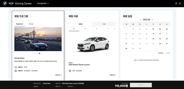 BMW 고객들은 프리미엄 브랜드에 걸맞는 심플하고 세련된 인터페이스를 기대합니다. 복잡한 단계 없이 최소한의 클릭으로 원하는 프로그램을 예약할 수 있도록 하는 것이 중요했어요.