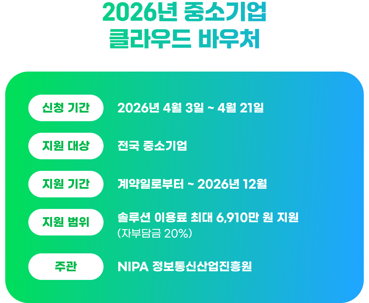 공지사항 상세내용 공지사항 공지사항 상세내용 [2026 클라우드 바우처] U.STRA HR 성과관리, ITSM 솔루션 이용료 80% 할인 지원 프로모션 일반 공지 2026.04.02 이전글 (주)지에스비즈플 2025년 제 2기 결산 공고 다음글 게시글이 없습니다. 목록